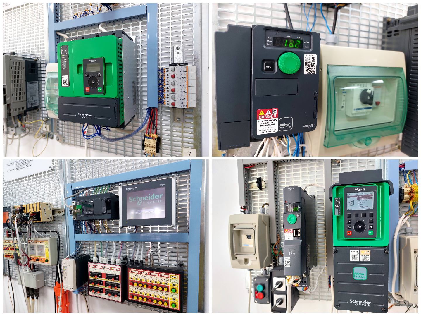 Центр обладнано новітніми частотно-керованими електроприводами Altivar серій ATV 12, ATV 21, ATV 31, ATV 312, ATV 32, ATV 58, ATV 61, ATV 71, ATV 310, ATV 320, ATV 340, ATV 630, ATV 930; пристроями плавного пуску Altistart 01, 48, 480; сервоприводом Lexium 05; інтелектуальними пускачами TeSysU; багатофункційними реле керування та захисту TeSysT; програмованими логічними контролерами М238, M241, Twido і Zelio Logic; панелями людино-машинного інтерфейсу Magelis; датчиками Osisense; комутаційною апаратурою та промисловими шафами Sarel компанії «Шнейдер Електрік». Площа навчальної лабораторії близько 100 м2. Загальна вартість обладнання навчального центру перевищує 700 тис. грн. Обладнання постійно поповнюється новими розробками компанії «Шнейдер Електрік».